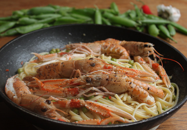 Linguine mit Scampi und Erbsen